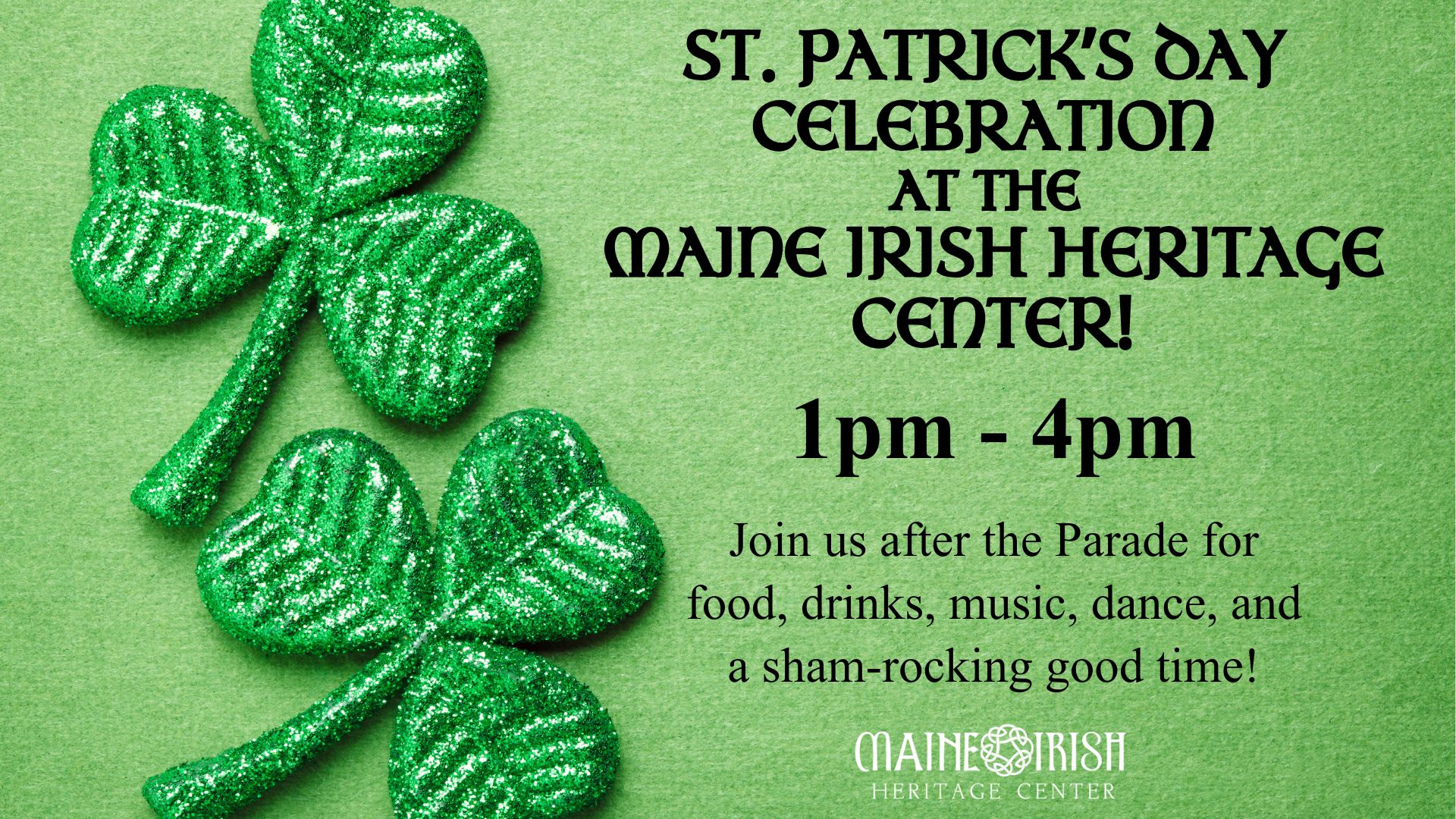 Join us after the IAC St. Patrick’s Day Parade over at the Maine Irish Heritage Center for a sham-rocking good time!