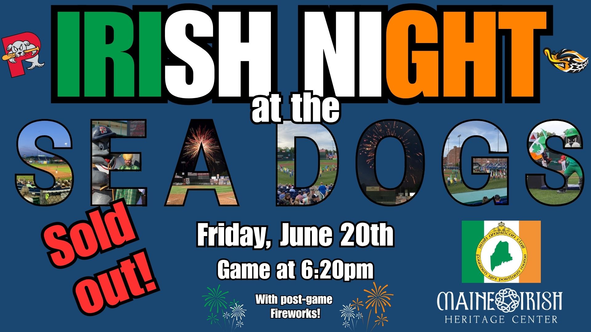 S O L D O U T ! General Admission Tickets are still available at the Sea Dogs box office. Friday, June 20 | Game Time: 6:20 PM | Hadlock Field Join us for a festive evening celebrating Irish culture and community at Irish Night at the Portland Sea Dogs! Enjoy an exciting matchup between the Portland...